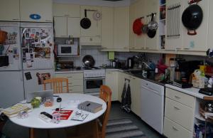 Ja nyt se kuva Romaanihenkilön kuolemasta meidän keittiön pöydällä ennen Eemilin kirjallisuuskeskustelua. Kirja on kirjailija Gerry Birgit Ilvesheimon omaisuutta, kirjan päällä on myös kirjailijan muistitikku, voi hitsi, miten pieni kuva tähän mahtuu.....: